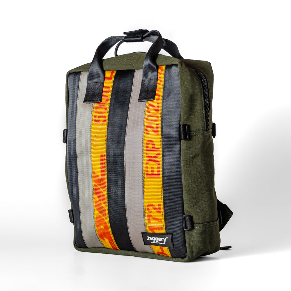 Ogni zaino è realizzato a mano da abili artigiani, utilizzando materiali recuperati secondo principi di etica del lavoro e sostenibilità ambientale. Le combinazioni di materiali e colori possono variare leggermente da pezzo a pezzo, rendendo ogni esemplare unico.